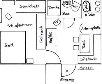 mit franz. Doppelbett Dusche Bad mit WC Terrasse mit